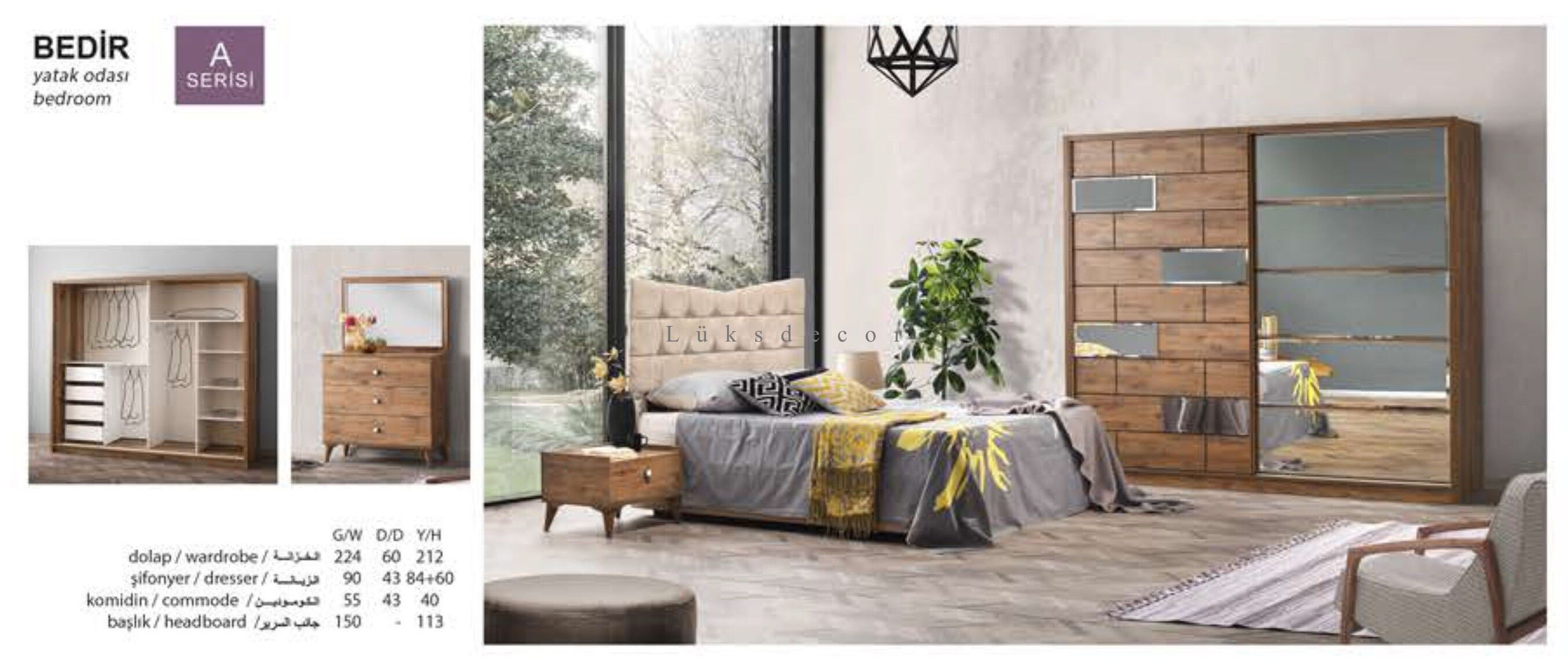 Ahşap Renkleri : Ceviz Renk Tonları , Beyaz Lake , Siyah Lake , Gümüş Varok, Altın Varok renkleri ve